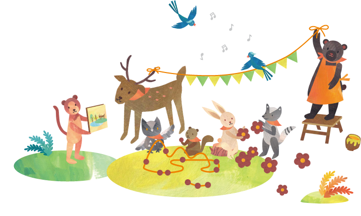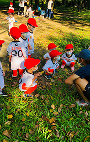 我們有全台北最豐富大自然資源的大安森林公園,孩子們除了跑跳之外,還能用五官感受自然界的變化,穿雨衣在森林中踩水玩耍。